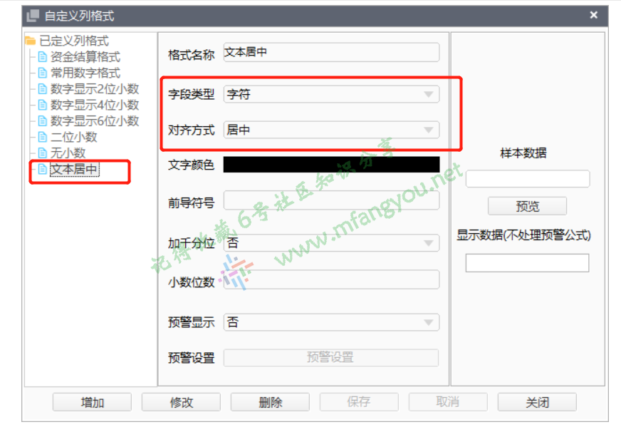 考虑到文本对齐等情况,增加字段处理,使得字段居中显示,需要增加数值型和文本型两种格式的居中显示;