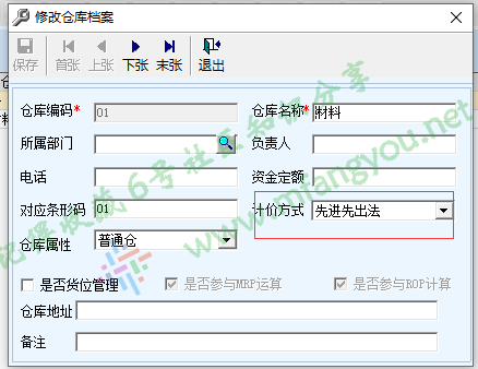 这里是按照仓库核算,接下来我们查看下仓库信息,仓库的计价方式是先进先出法