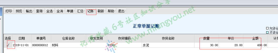 - 所有的入库和出库单据做完之后,我们现在进行正常记账。
