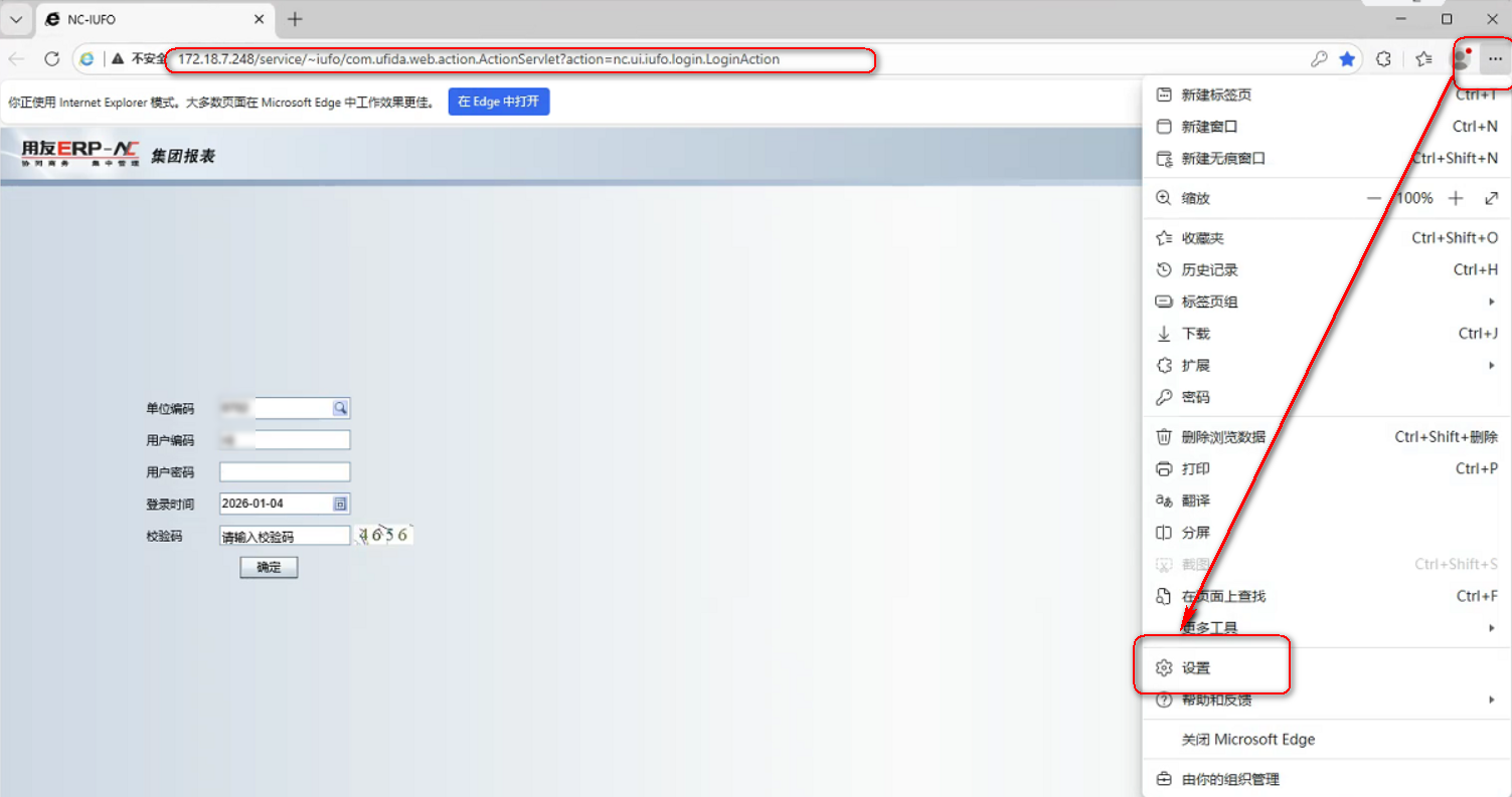 第一步 ,在浏览器右边 【设置】,并复制需要设置兼容性的网址: